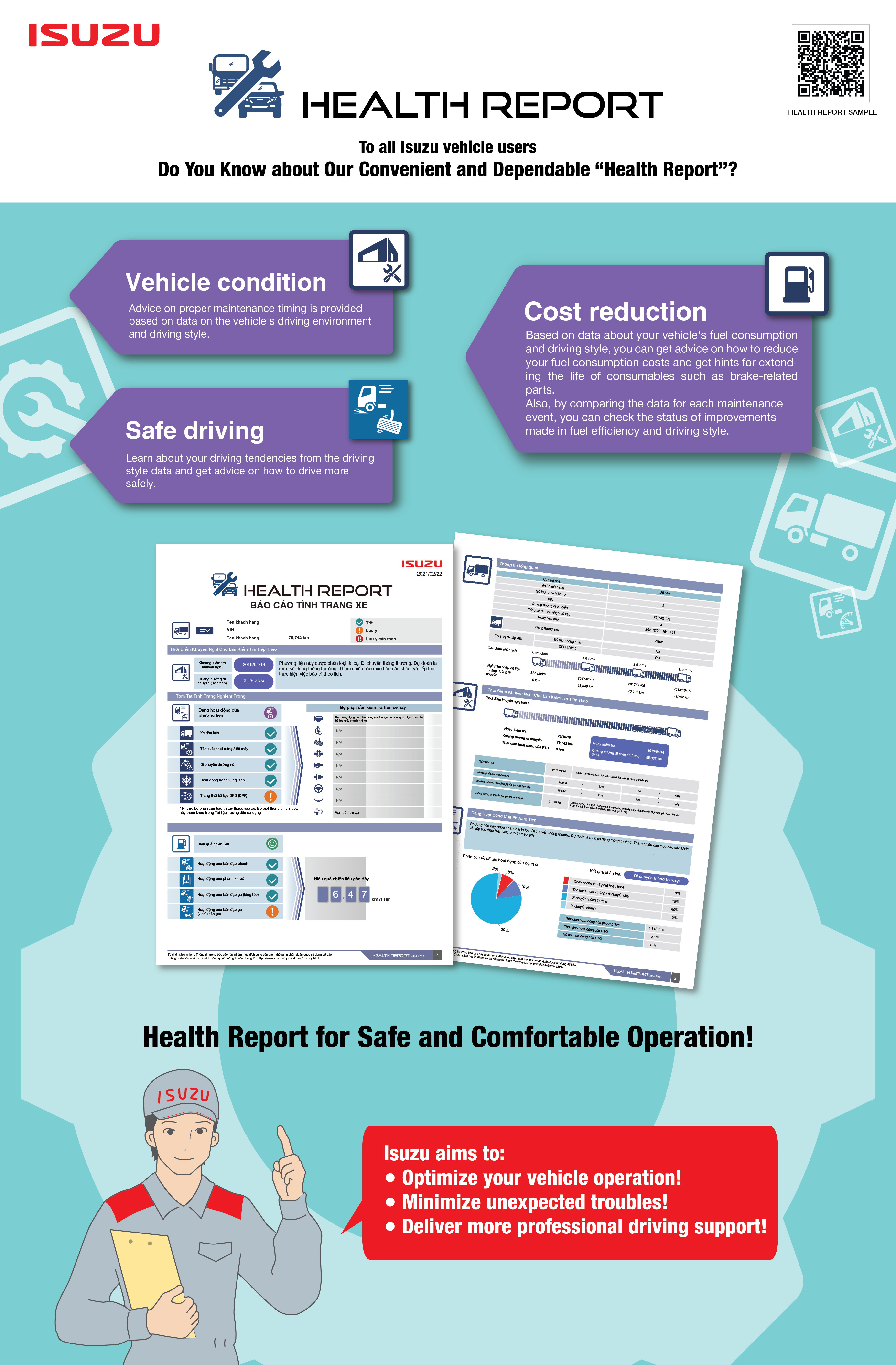 The new generation of Isuzu trucks is equipped with a Common Rail electronic fuel injection engine, applying the new Isuzu GREEN POWER technology, helping to optimize power, durability, fuel economy & environmental friendly